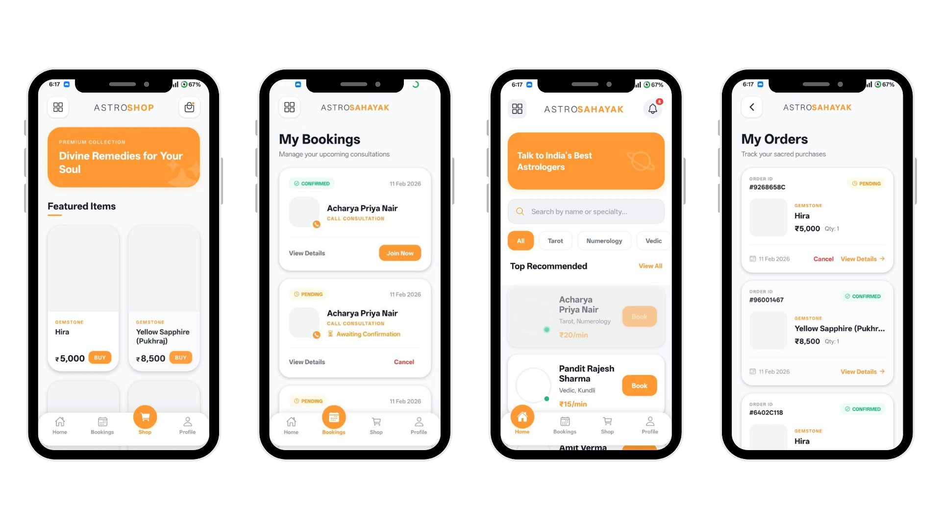 The client wanted a mobile app that would allow users to book consultations, generate Kundali, chat for basic guidance, and also purchase astrology-related products — all in one place.