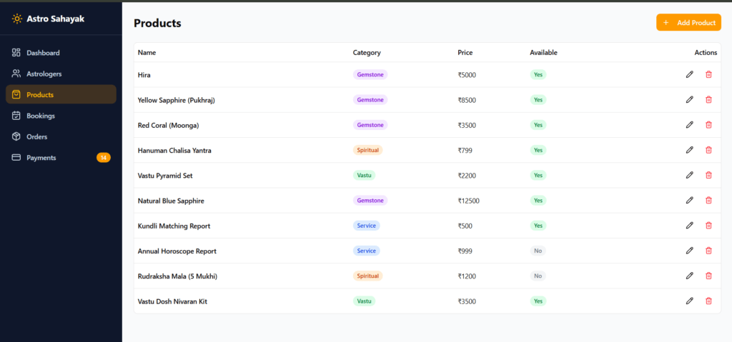 Integrated E-commerce Module for selling astrology-related products and digital services.