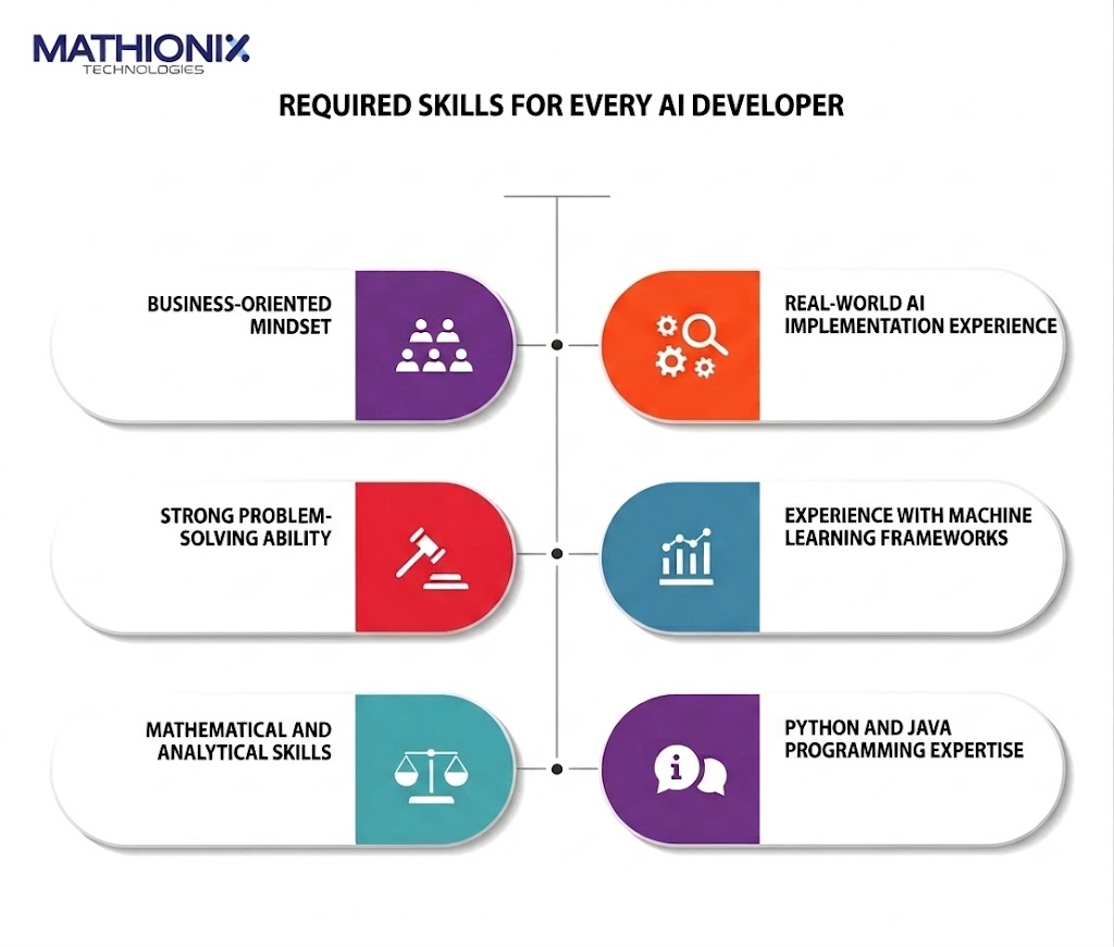 Python remains the dominant language in AI development due to its ecosystem of libraries and clean syntax. Most machine learning frameworks are built around it, and the vast majority of AI workflows begin and end in Python. Java comes into play in enterprise settings where AI models need to integrate with existing backend systems built at scale. A solid AI developer should be fluent in Python and have practical familiarity with Java or at least one other compiled language depending on your stack.